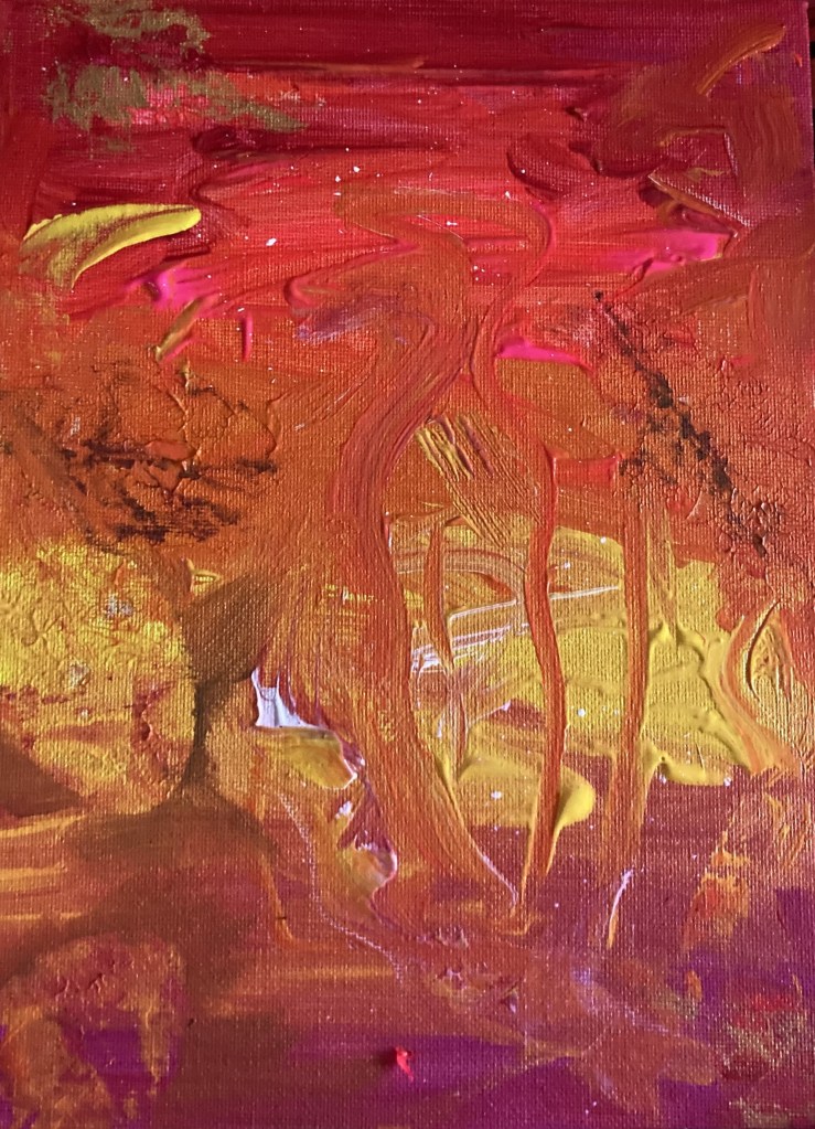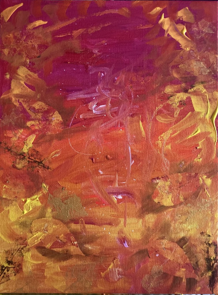 Come un ripetersi dal centro che si espande e ritorna al centro ritmicamente. Forse una musica. Definito anche danza, atomo, esplosione nucleare.