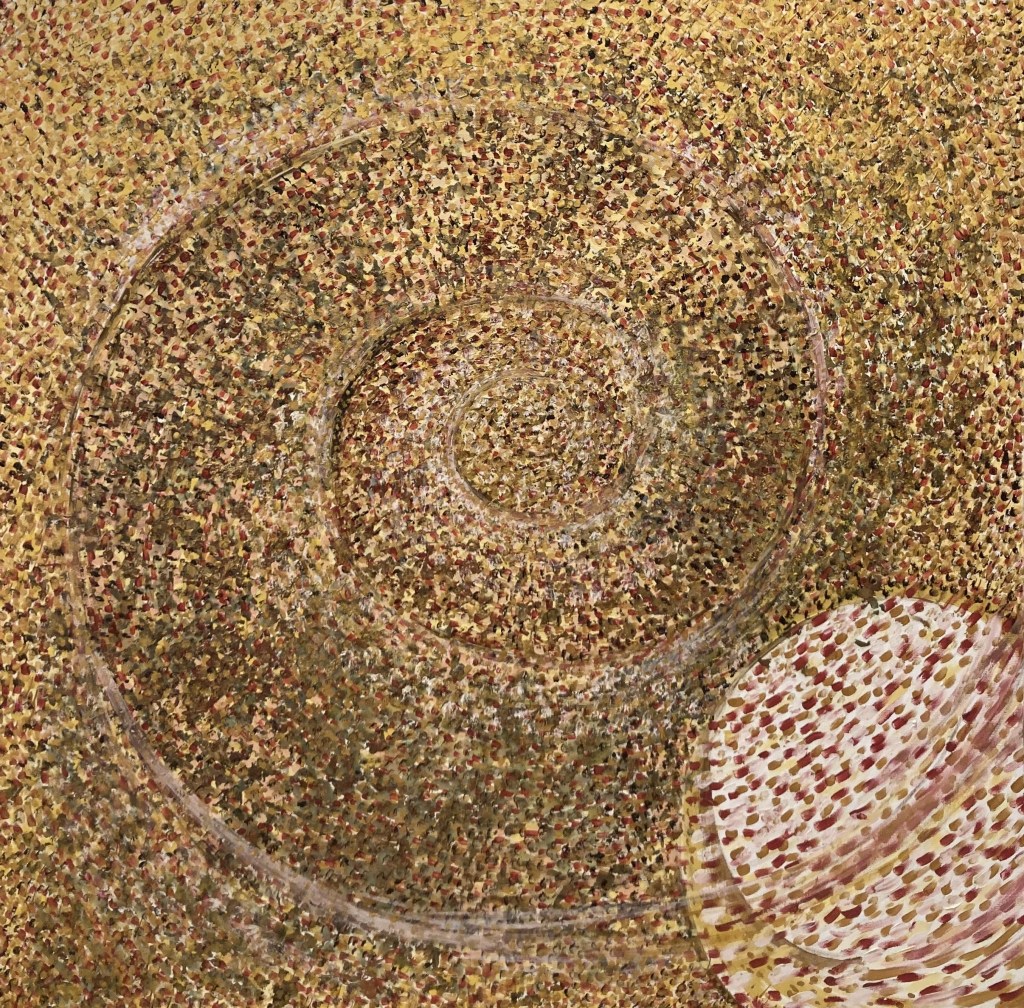 I molteplici granelli di sabbia rappresentati da gocce di colore accostate e sovrapposte dai molteplici colori quasi monocromatici, tono su tono.