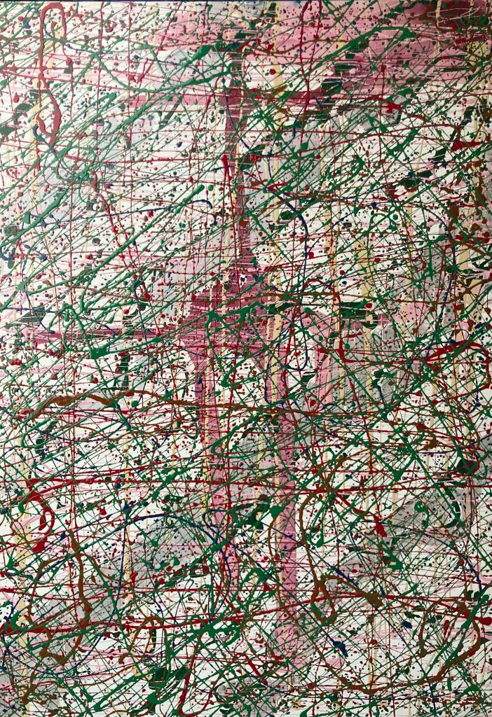 Orizzontali e verticali s’intrecciano come a creare una trama, da cui si può vedere attraverso, con variazioni bizzarre nei colori rosso e verde. Quasi un’organismo vitale che pulsa, arterie vive e fresche.