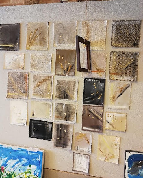 Un dipinto che si può ricomporre liberamente, mantenendo l’ordine originario o modificandolo. Le diverse tele, frammenti di un’unità possono venire appesi alla parete così come sono o posizionati su un pannello rigido a piacere a a gusto dell’acquirente. Il cliente a propria volta diventa creativo e partecipe dell’esecuzione dell’opera totale.
